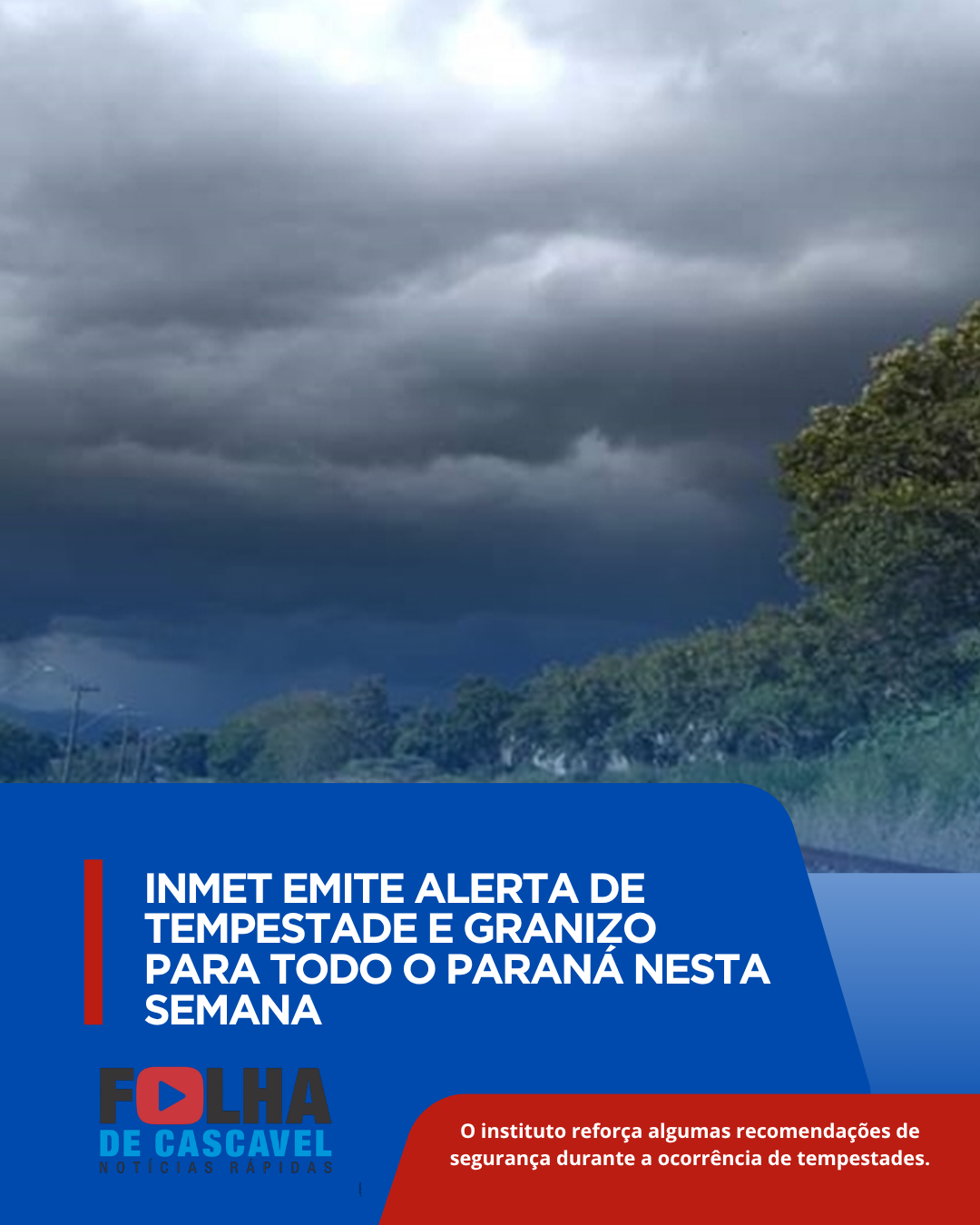 O Instituto Nacional de Meteorologia (Inmet) emitiu um alerta de tempestade que abrange todo o Paraná para a próxima terça-feira (07).
