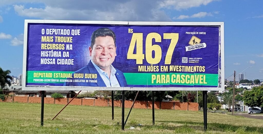O deputado estadual Gugu Bueno deixa explícito sua luta pela cidade de Cascavel “esse outdoor resume a luta de um deputado a representatividade política que muitos não valorizam, ou muitos às vezes não querem discutir e falar de eleição e representatividade ”.